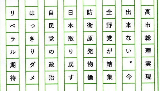 逆読みコーナー 2025年8月14日 最終更新日時 : 2025年10月14日 yoshihara 自公連立政権が白紙になった今、問われるのは全政党・全議員の矜持(きょうじ)。国民は注視しています。 私達が支えます。日本のリーダーは先生しかおりません!次は私がやりますから。 いつごろからだろうか、公安の人や商売人がトップになったのは。 「わたし『東京大』とは言ってません」 総理、総理、総理、寝ている場合じゃありません。多くの人から激励?がきてます。 イヨっ大統領!あなたがいないと世界はだめになります。本心でみんな言ってます。