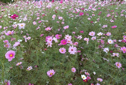秋晴れ、風もなく絶交の日和でしたが、主役のバラは今年の異常気温のせいか正直、今イチでした。コスモスはきれいでした。